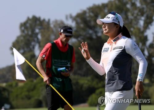 | ▲ 버디를 잡아내고 응원에 답례하는 고진영. [AFP/게티이미지=연합뉴스] |