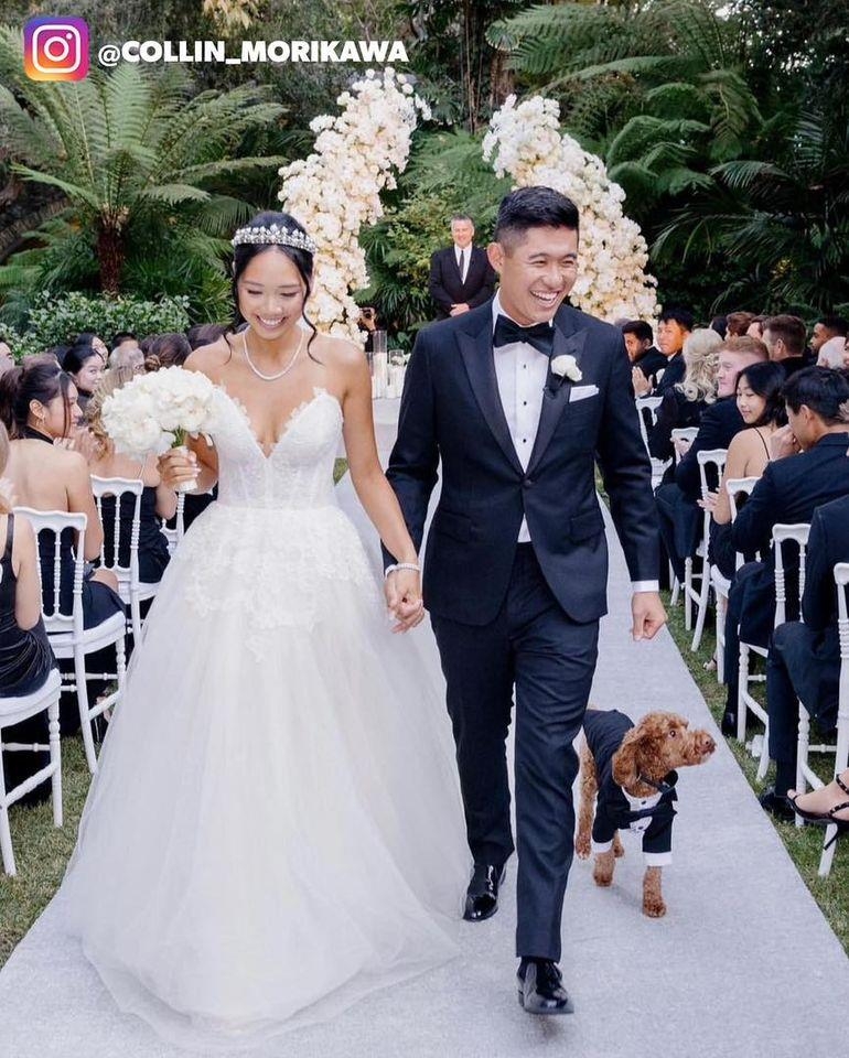 | ▲ 예복과 웨딩드레스를 입고 결혼식장에 들어서는 모리카와 부부. [모리카와 소셜 미디어. 재판매 및 DB 금지] |