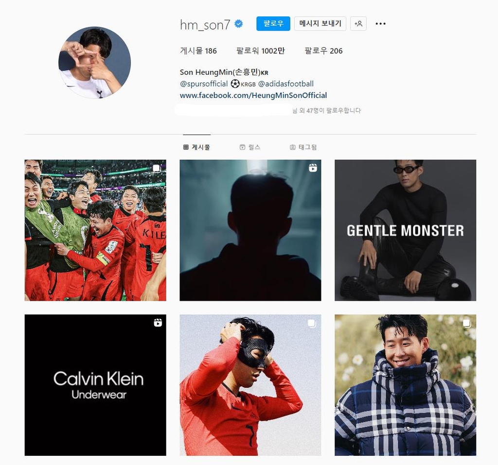 | ▲ 팔로워 1천만명을 돌파한 손흥민 [손흥민 인스타그램 캡처. 재판매 및 DB 금지] |
