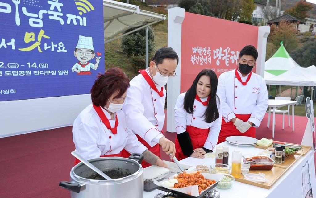 (해남=연합뉴스) 조근영 기자 = 전남 해남 농수특산물과 먹거리를 주제로 한 해남 미남축제가 12일 대흥사 잔디구장 일원에서 막을 올렸다.