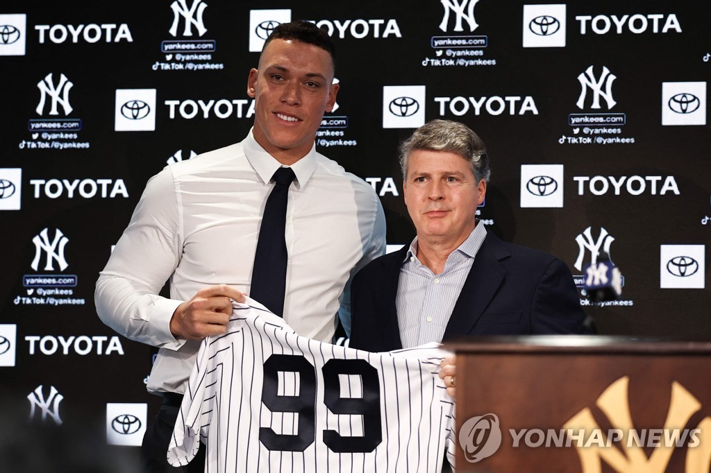 | ▲ 에런 저지(왼쪽)와 구단주 할 스타인브레너 [AFP=연합뉴스] |