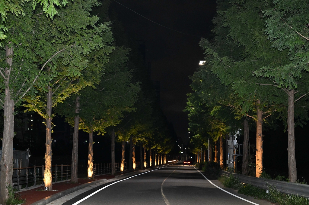 남구는 보도 설치와 함께 메타세쿼이아 가로수 179그루를 추가로 심고, 경관 조명으로 도로 명판 1곳, 수목투사등 112개, 볼라드등 21개를 설치했다.