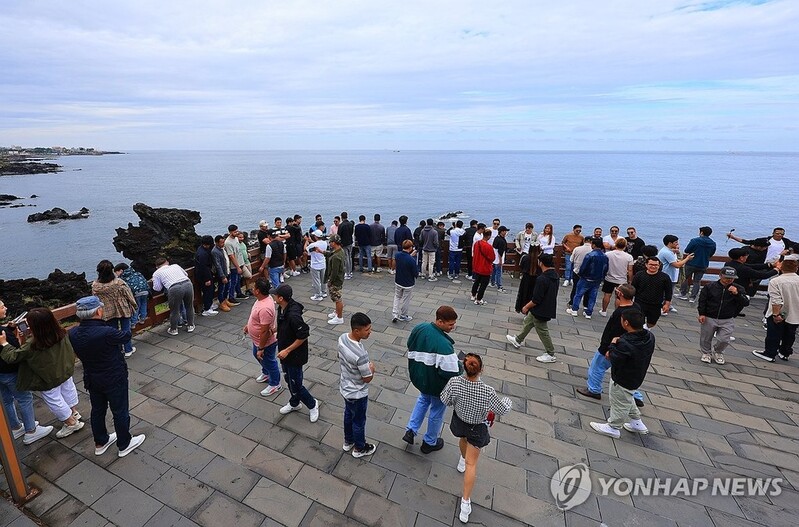 ▲ 추석 연휴 제주 용두암 찾은 관광객들 (제주=연합뉴스) 전지혜 기자 = 추석 연휴 사흘째인 30일 제주시 용두암 일대가 내외국인 관광객으로 북적이고 있다. 2023.9.30 atoz@yna.co.kr