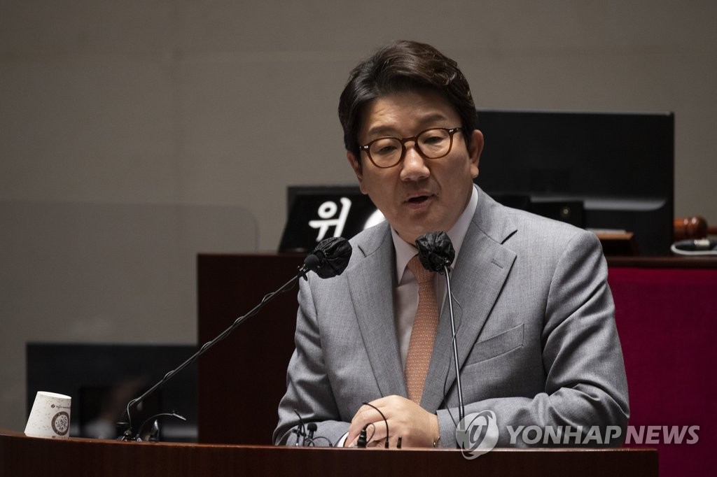 | ▲ Rep. Kweon Seong-dong, floor leader of the ruling People Power Party, delivers remarks at the National Assembly in Seoul on June 23, 2022. (Pool photo) (Yonhap) |