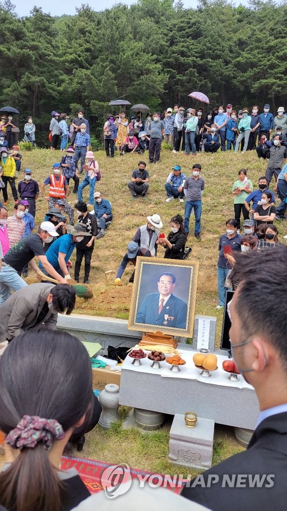 안장식은 지난 2018년 먼저 세상을 떠난 부인 석옥이 여사의 묘 옆에 마련된 가묘에 유해를 묻는 하관식을 시작으로 봉토 작업, 제례 등의 순으로 치러졌다.
