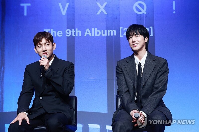 | ▲ '데뷔 20주년' 동방신기, 정규 9집 발매 (서울=연합뉴스) 진연수 기자 = 그룹 동방신기 최강창민, 유노윤호가 26일 오후 서울 영등포구 콘래드 호텔에서 열린 정규 9집 '20&2' 발매 기념 기자회견에서 질문에 답하고 있다. 2023.12.26 jin90@yna.co.kr |