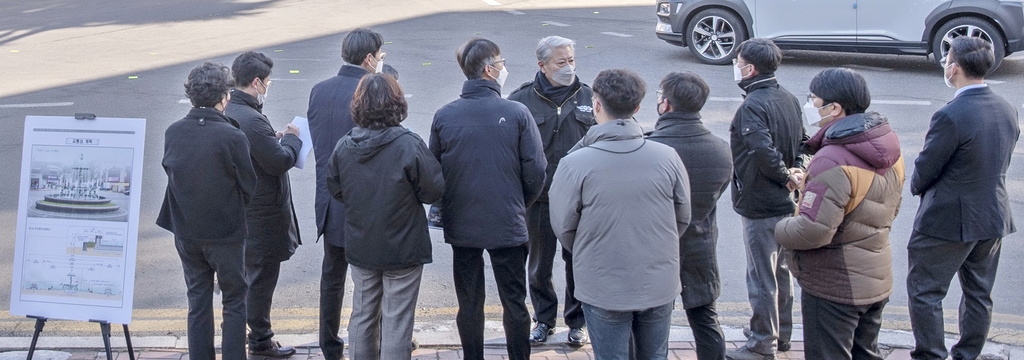 | ▲ 삼척우체국 앞 회전교차로 설치 현장 점검하는 삼척시 [삼척시 제공.재판매 및 DB 금지] |