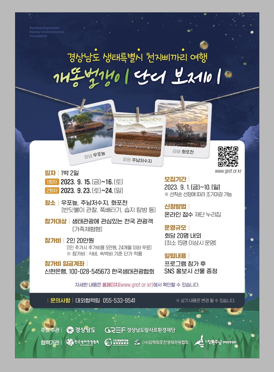 참가 신청은 생태관광 프로그램 운영 기관인 경남도 람사르환경재단 누리집(www.gref.or.kr)에서 할 수 있다.