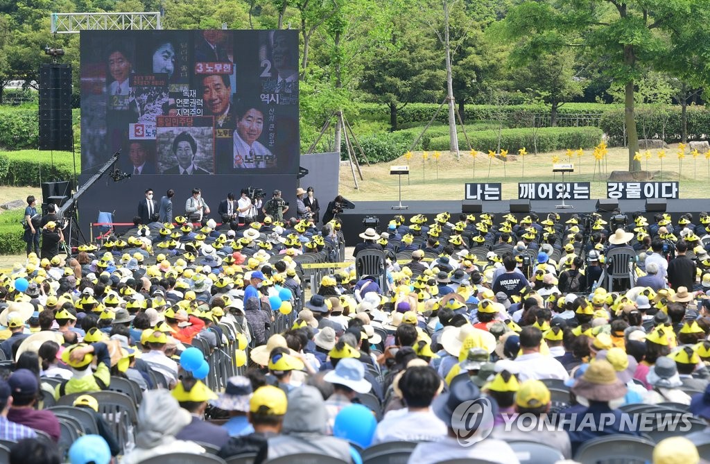 | ▲ People attend a memorial service for the late President Roh Moo-hyun in Bongha Village, Gimhae, some 450 kilometers southeast of Seoul, on May 23, 2022. (Pool photo) (Yonhap) |