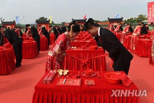 | ▲ 2021년 10월 25일 중국의 한 합동결혼식 [신화 연합뉴스 자료사진] |