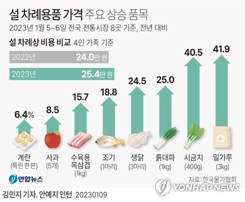 | ▲ [그래픽] 설 차례용품 가격 주요 상승 품목 (서울=연합뉴스) 김민지 기자 = minfo@yna.co.kr 트위터 @yonhap_graphics 페이스북 tuney.kr/LeYN1 |