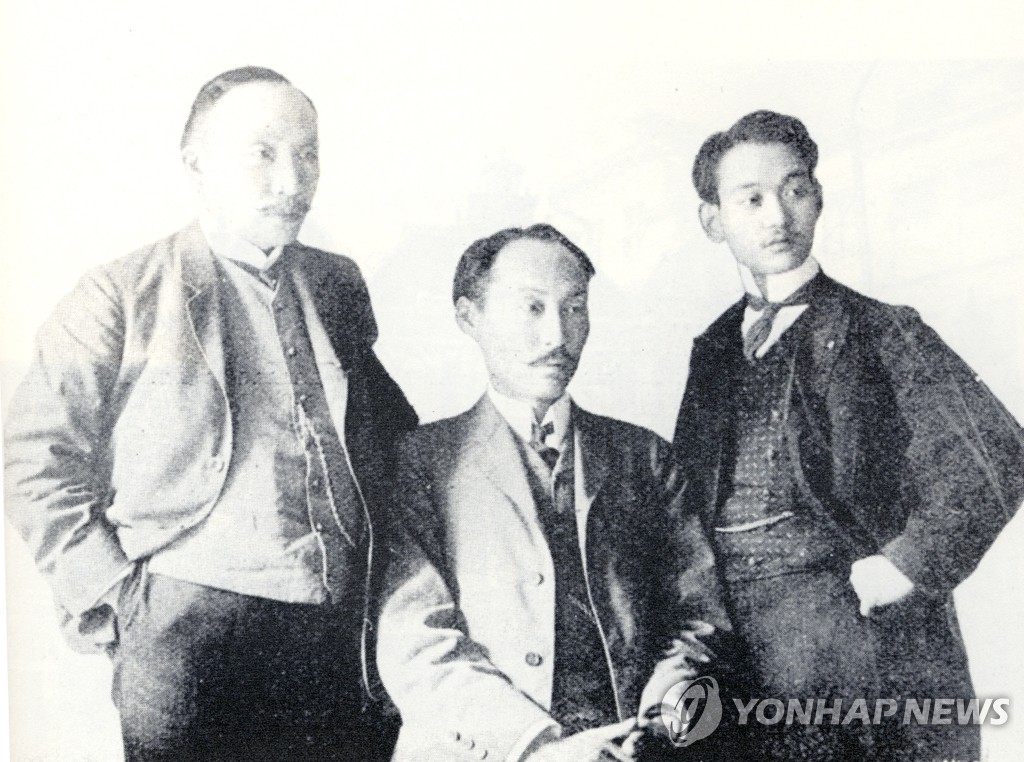 ▲ 헤이그특사 삼총사 (서울=연합뉴스) 1907년 6∼7월 네덜란드 헤이그에서 개최된 제2회 만국평화회의에 대한제국 고종황제가 밀사로 파견한 이준(왼쪽부터), 이상설, 이위종. 2007.7.5