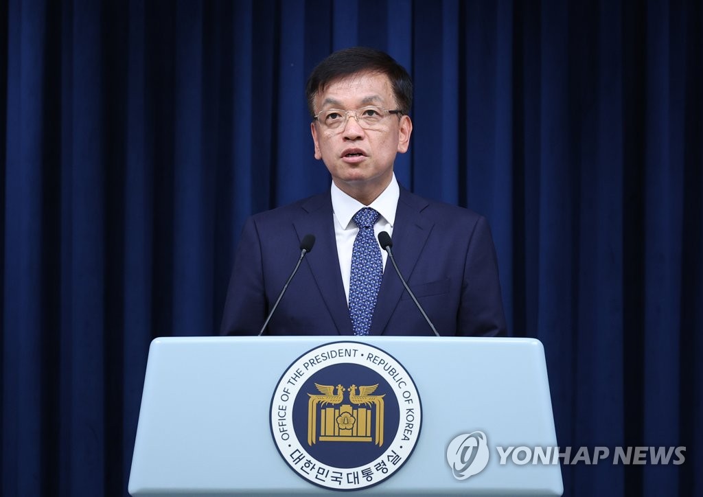 ▲ Choi Sang-mok, senior presidential secretary for economic affairs, gives a press briefing on President Yoon Suk Yeol's upcoming trip to Lithuania and Poland at the presidential office in Seoul on July 6, 2023. (Yonhap)