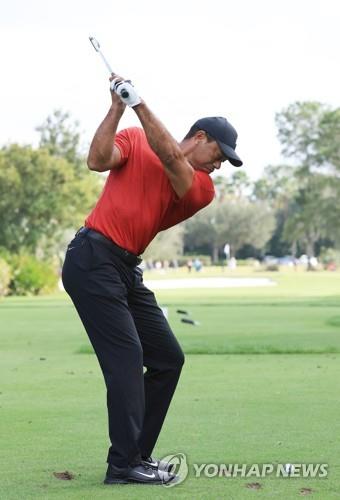 | ▲ 작년 12월 PNC 챔피언십 때 스윙하는 우즈. [AFP/게티이미지=연합뉴스] |