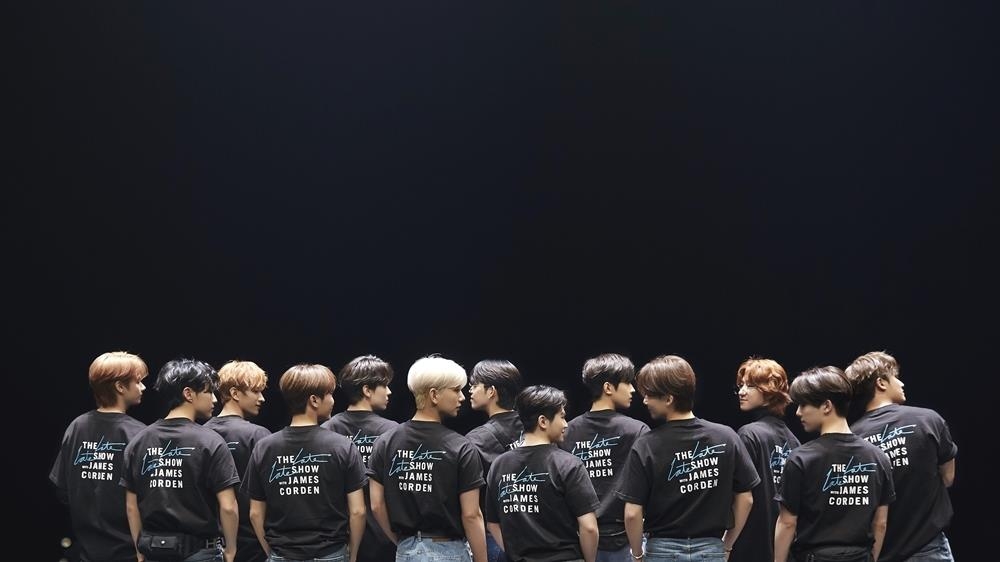 | ▲ This photo, provided by Pledis Entertainment, shows members of K-pop band Seventeen in T-shirts for "The Late Late Show with James Corden," a popular American TV show. (PHOTO NOT FOR SALE) (Yonhap) |