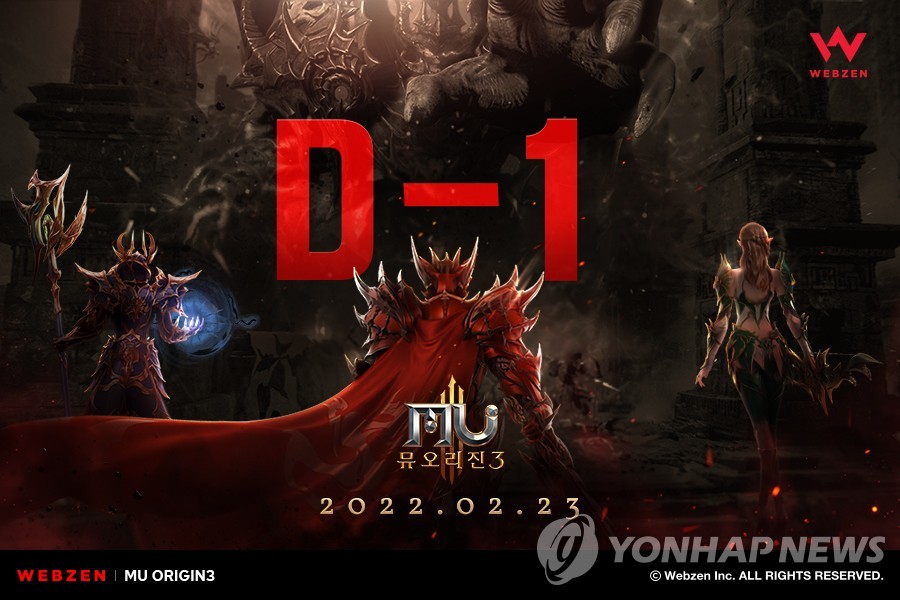 (서울=연합뉴스) 최현석 기자 = 웹젠[069080]은 22일 오후 4시 신작 모바일 다중접속역할수행게임(MMORPG) '뮤오리진3(MU Origin 3)' 사전 다운로드 서비스를 개시했다고 밝혔다.