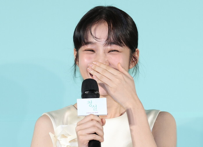 South Korean actress Roh Yoon-seo, who stars in the new movie "Hear Me: Our Summer," responds to reporters' questions during a publicity event in Seoul on Oct. 18, 2024. The movie will be released in South Korea on Nov. 6. (Yonhap)