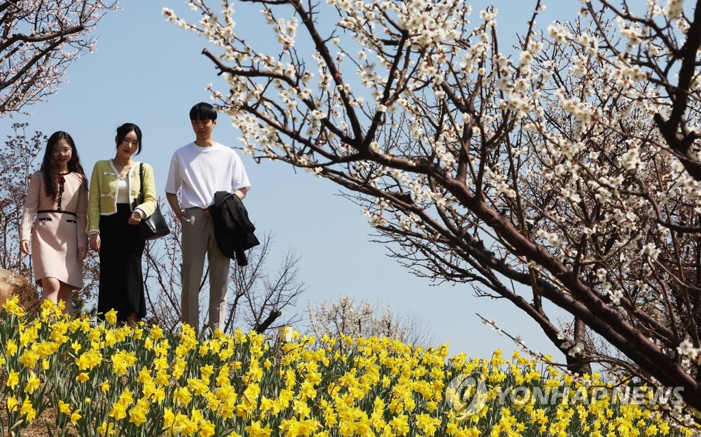 | ▲ 봄을 느끼며 (용인=연합뉴스) 홍기원 기자 = 화창한 봄 날씨를 보인 30일 오전 경기도 용인시 에버랜드 하늘정원길에 수선화와 매화 등 봄꽃이 만개해 있다. 2023.3.30 xanadu@yna.co.kr |