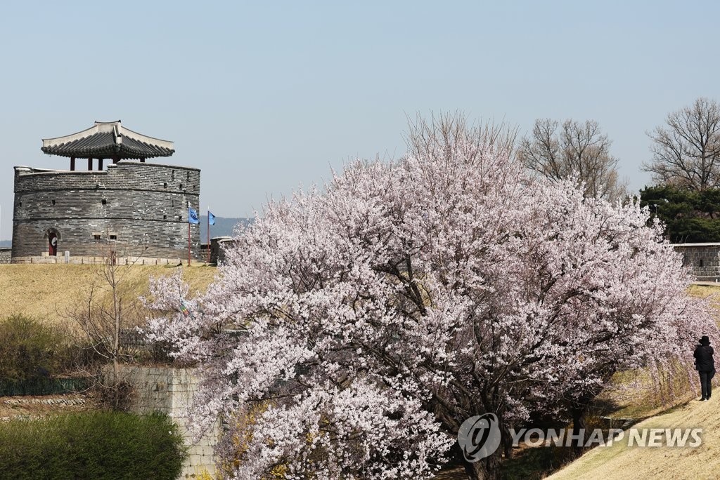 | ▲ 수원화성 벚꽃 (수원=연합뉴스) 2022년 4월 8일경기도 수원시 세계문화유산 화성(華城)을 찾은 시민들이 벚꽃이 활짝 핀 성곽길을 걷고 있다. 2022.4.8 [연합뉴스 자료사진. 재판매 및 DB 금지] |