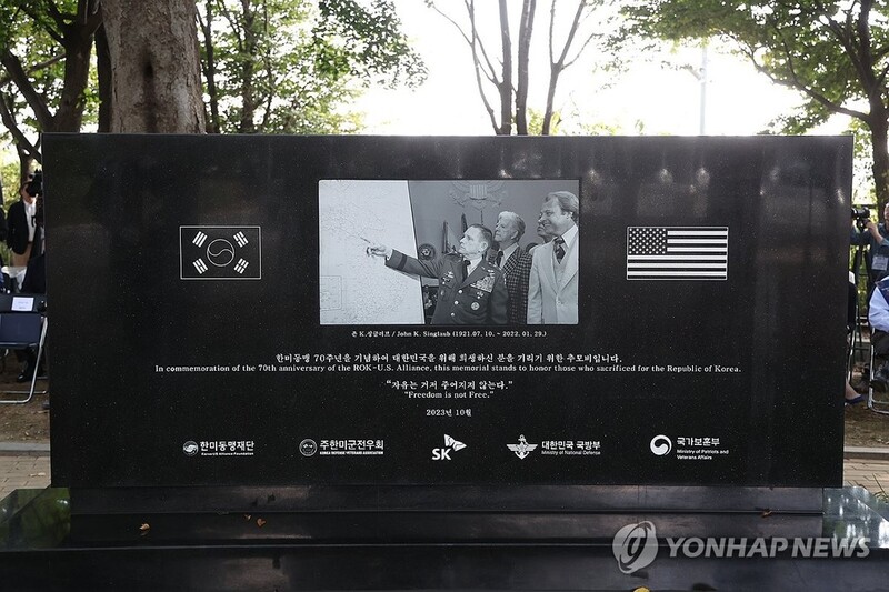 The memorials were erected at Imjingak Pyeonghwa Nuri Park in Paju, just south of the Demilitarized Zone, to honor late U.S. Maj. Gen. John Singlaub and late U.S. Army Col. William Weber, the Korea-U.S. Alliance Foundation said.