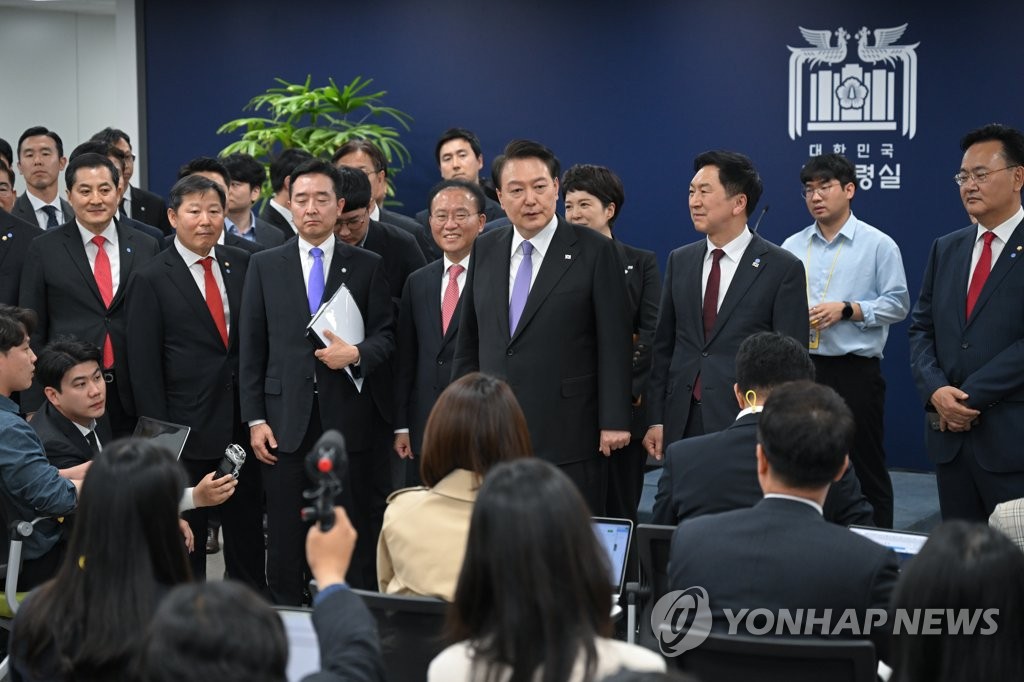 Later in the day, Yoon dropped by the press room of the presidential office.