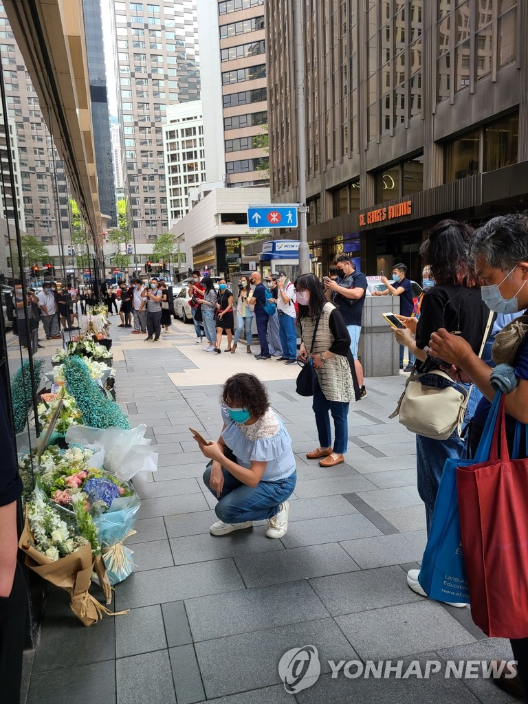 이날 오후 만다린 오리엔탈 호텔의 한쪽 벽에는 꽃길이 만들어졌다. 어린 아들을 데리고 나온 젊은 엄마와 백발의 부부, 건장한 남성 팬도 꽃다발을 놓고 가며 묵념했다.