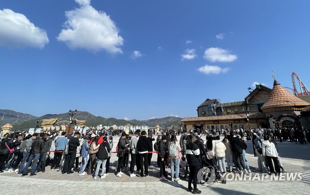 | ▲ '개장 후 첫 주말' 롯데월드 어드벤처 부산 (부산=연합뉴스) 김재홍 기자 = 2일 오전 부산 기장군 오시리아 관광단지 내 '롯데월드 어드벤처 부산' 출입구 앞에 입장을 기다리는 시민들이 길게 줄지어 있다. 롯데월드 어드벤처 부산은 이날 개장 후 첫 주말을 맞았다. 2022.4.2 pitbull@yna.co.kr |