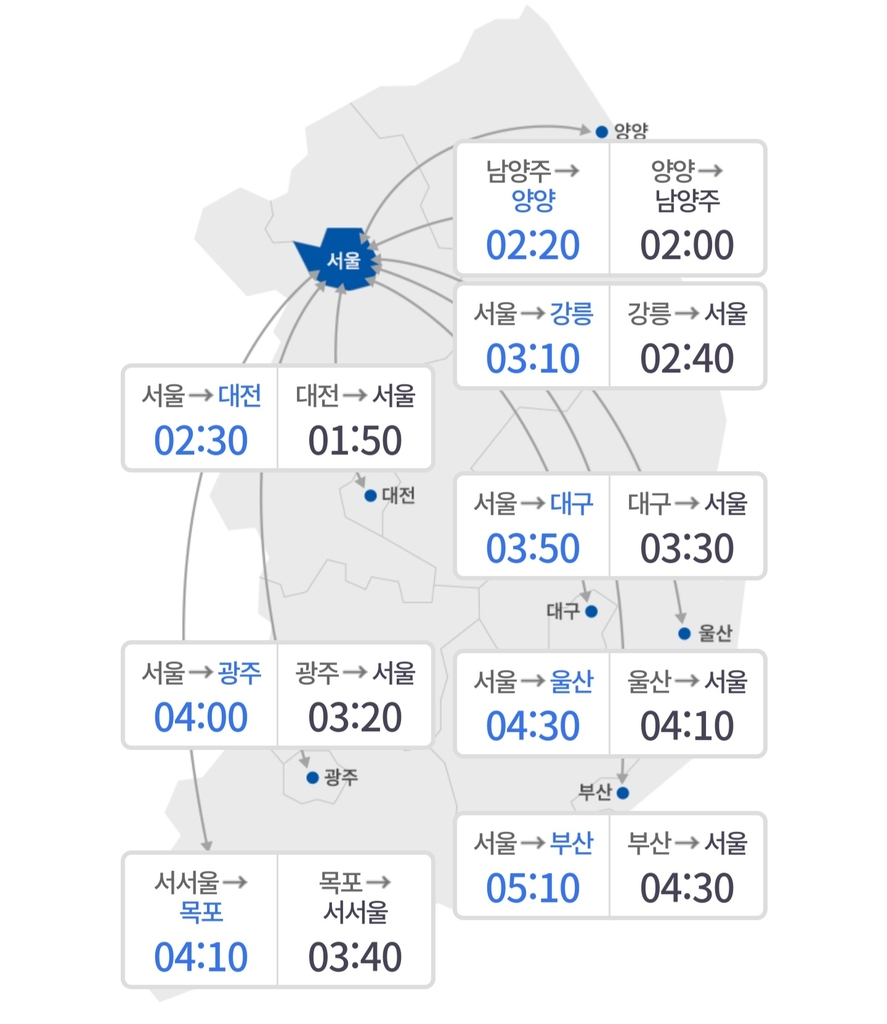이날 오후 5시 승용차로 서울 요금소를 출발해 주요 도시까지 도착하는 시간은 부산 5시간 10분, 울산 4시간 30분, 목포 4시간 10분, 광주 4시간, 대구 3시간 50분, 강릉 3시간 10분, 대전 2시간 30분 등이다.