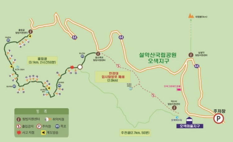 | ▲ 설악산 흘림골 탐방로 현황도 [국립공원공단 제공. 재판매 및 DB 금지] |
