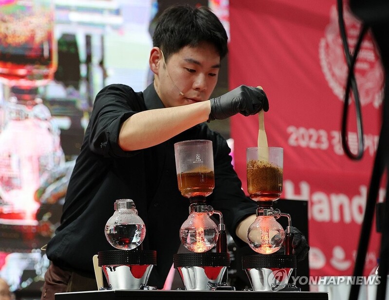| ▲ 커피향 가득한 강릉커피축제 (강릉=연합뉴스) 유형재 기자 = 12일 개막한 제15회 강릉커피축제의 하나로 열린 경연대회에서 한 참가자가 심혈을 기울여 커피를 만들고 있다. 2023.10.12 yoo21@yna.co.kr |