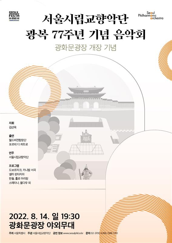 (서울=연합뉴스) 김용래 기자 = 서울시와 서울시립교향악단은 오는 14일 광화문광장 야외무대에서 광복 77주년 기념 음악회를 연다.