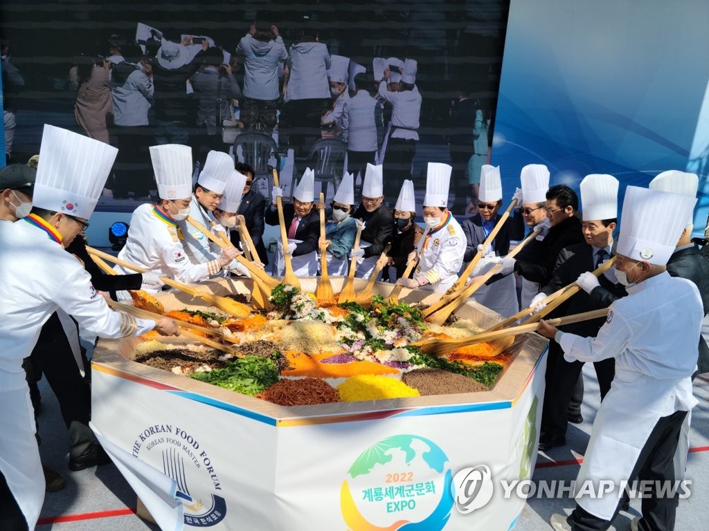 엑스포 조직위는 11일 오전 11시 30분께 충남 계룡시 계룡대 계룡세계군문화엑스포 행사장에서 비빔밥 300인분을 만들어 방문객들과 나눴다.