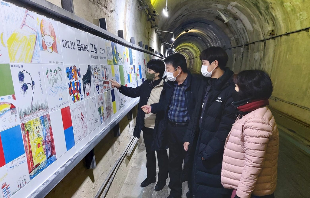 올해는 터널 입구 무인공방에서 관광객들이 그린 그림을 실사해 500점가량을 부착했다.