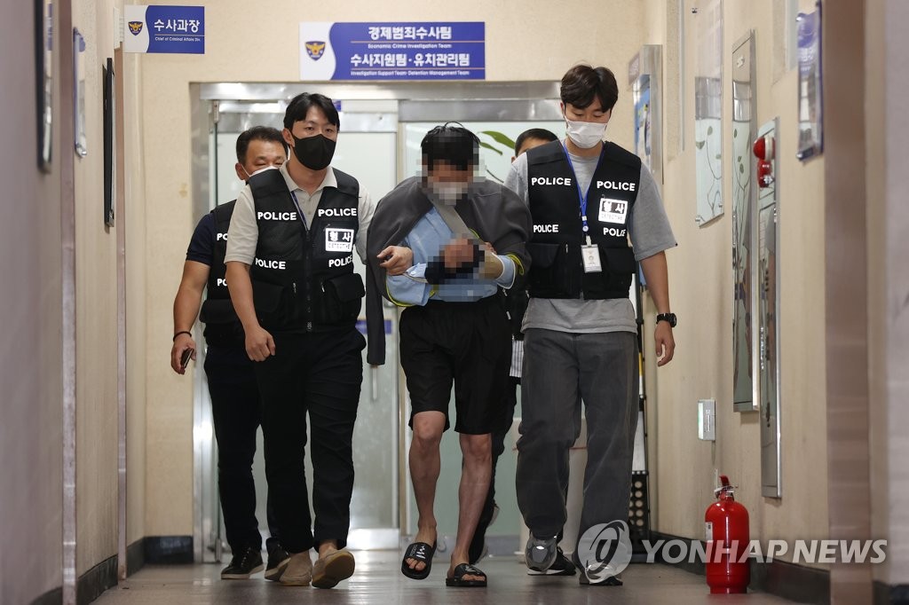 | ▲ The 31-year-old suspect in the murder of a female Seoul Metro employee at Sindang Station on Line No. 20 shows up for a court hearing at the Seoul Central District Office on Sept. 16, 2022, two days after the alleged murder. (Yonhap) |