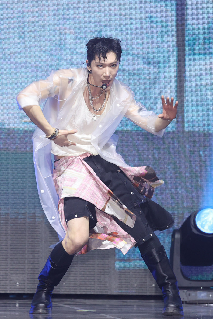 Ten, a member of South Korean boy group NCT, performs during a showcase in Seoul on Feb. 13, 2024, to promote the release of his first solo mini album "Ten" with title song "Nightwalker." (Yonhap)