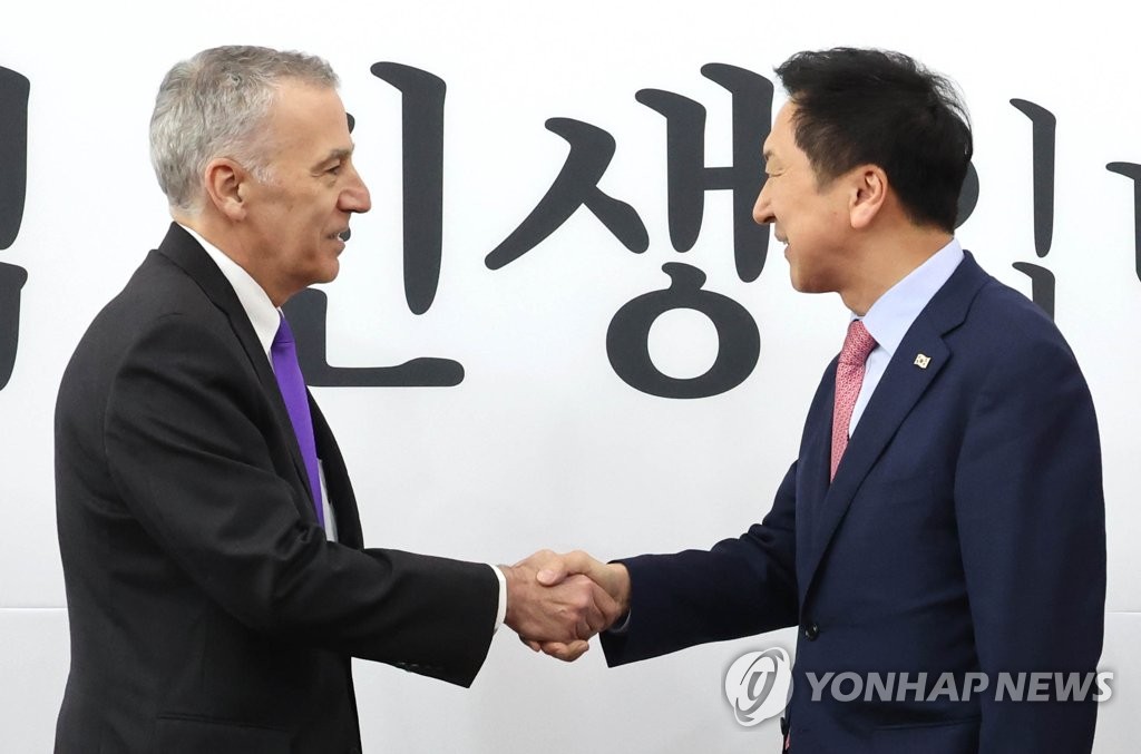 SEOUL, March 20 (Yonhap) -- Ruling People Power Party (PPP) leader Kim Gi-hyeon met with U.S. Ambassador to South Korea Philip Goldberg on Monday and discussed bilateral issues ranging from North Korea's provocations to President Yoon Suk Yeol's upcoming trip to the U.S. next month.