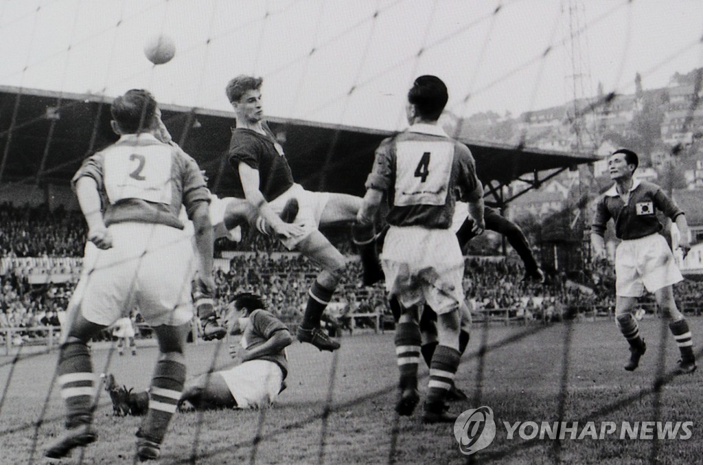 | ▲ 1954년 스위스월드컵 헝가리전 1954년 스위스월드컵 헝가리전 (서울=연합뉴스) 1954년 스위스월드컵 한국-헝가리전. 한국은 0-9로 패했다. |