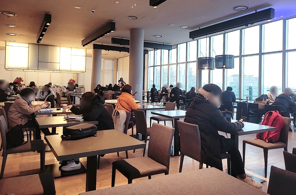 | ▲ 22일 강한 눈에 발 묶여 제주시 내 한 호텔에서 체크인 기다리는 관광객들 [독자 제공. 재판매 및 DB 금지] |