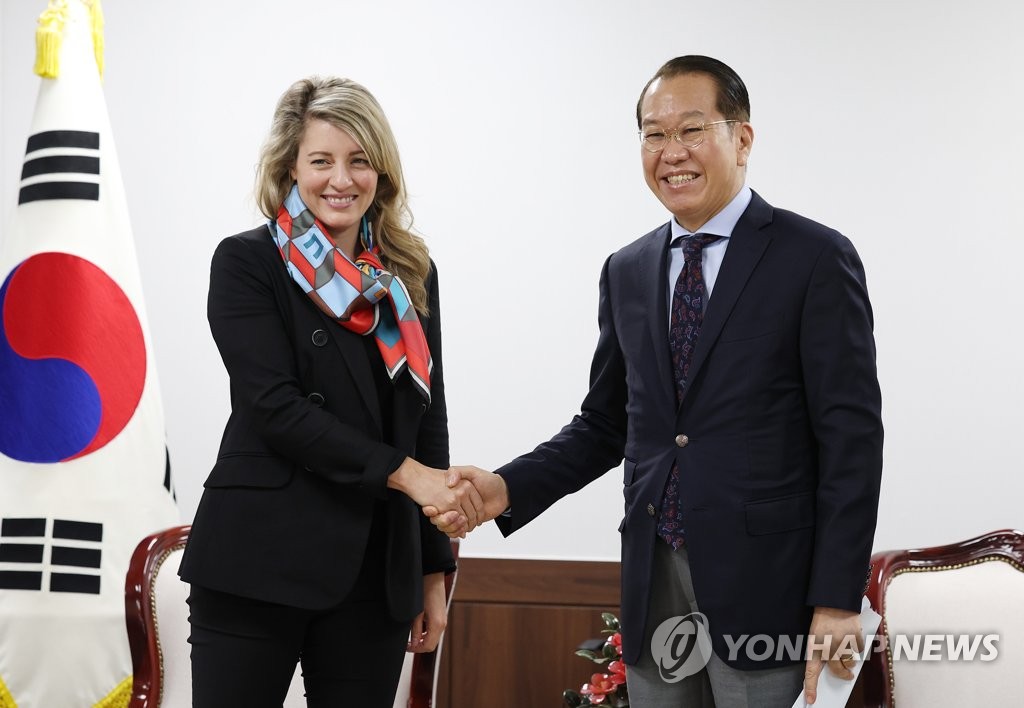Later in the day, Foreign Minister Park Jin also met with Joly to discuss bilateral issues and cooperation, according to Seoul's foreign ministry.