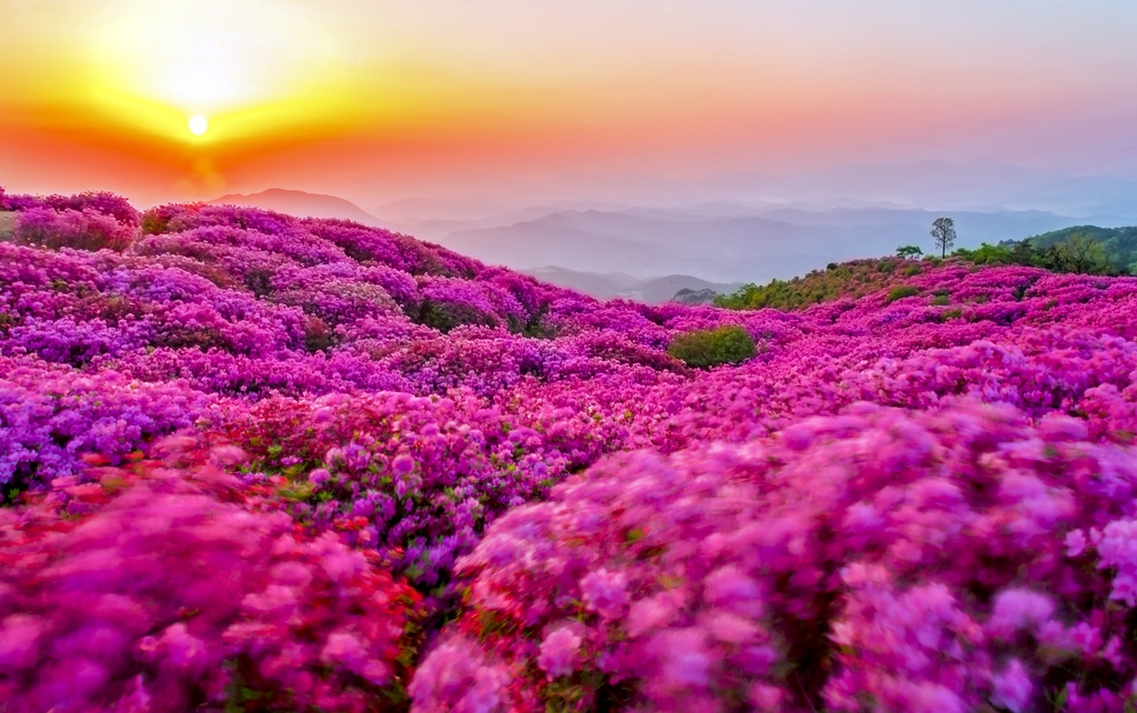 봄이 되면 합천군과 산청군 경계에 위치한 황매산 800여m 고지에는 60만㎡ 철쭉군락지가 분홍빛으로 물든다.