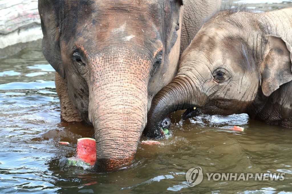 | ▲ 사이좋게 수박 먹는 코끼리들 [연합뉴스 자료사진] |