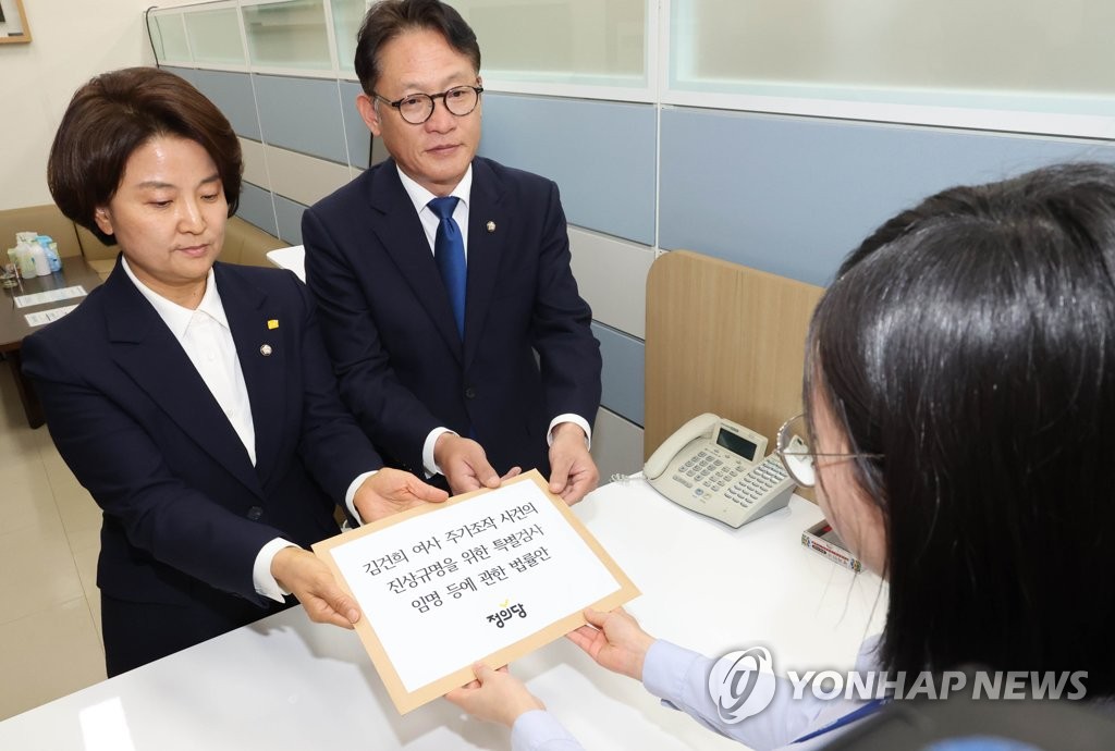 SEOUL, March 24 (Yonhap) -- The minor opposition Justice Party tabled a bill Friday calling for a special counsel investigation of first lady Kim Keon Hee over stock manipulation allegations.