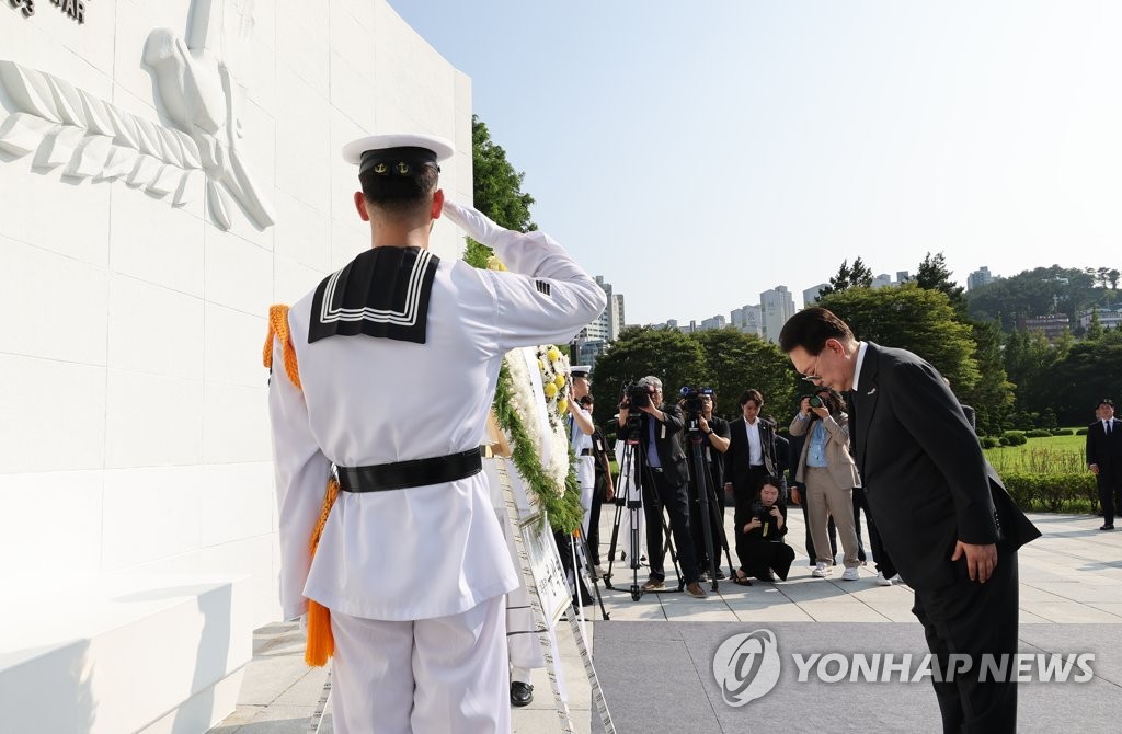 SEOUL, July 27 (Yonhap) -- President Yoon Suk Yeol visited the United Nations Memorial Cemetery in Busan on Thursday where he paid tribute to fallen soldiers and marked the 70th anniversary of the armistice agreement that ended fighting in the 1950-53 Korean War.