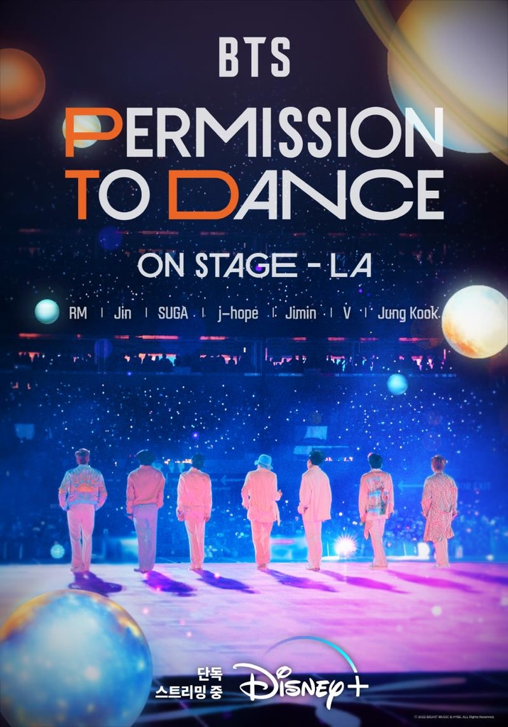 (서울=연합뉴스) 강애란 기자 = ▲ 디즈니+, BTS 'LA 콘서트' 실황 공개 = 디즈니+는 8일 디즈니+데이를 맞아 방탄소년단(BTS)의 미국 로스앤젤레스(LA) 콘서트 현장을 담은 'BTS : 퍼미션 투 댄스 온 스테이지(PERMISSION TO DANCE ON STAGE)를 공개했다.