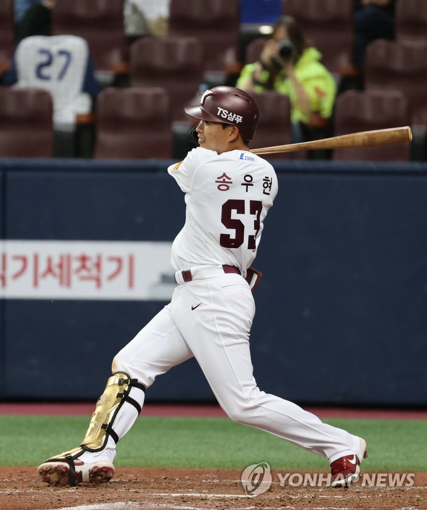 At the plate on Saturday, Song Woo-hyun did unexpected damage from No. 9 spot.