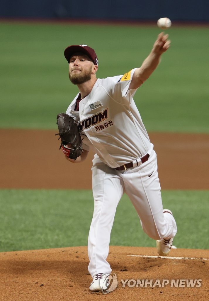 | ▲ Eric Jokisch of the Kiwoom Heroes pitches against the Samsung Lions during a Korea Baseball Organization regular season game at Gocheok Sky Dome in Seoul on April 3, 2021. (Yonhap) |
