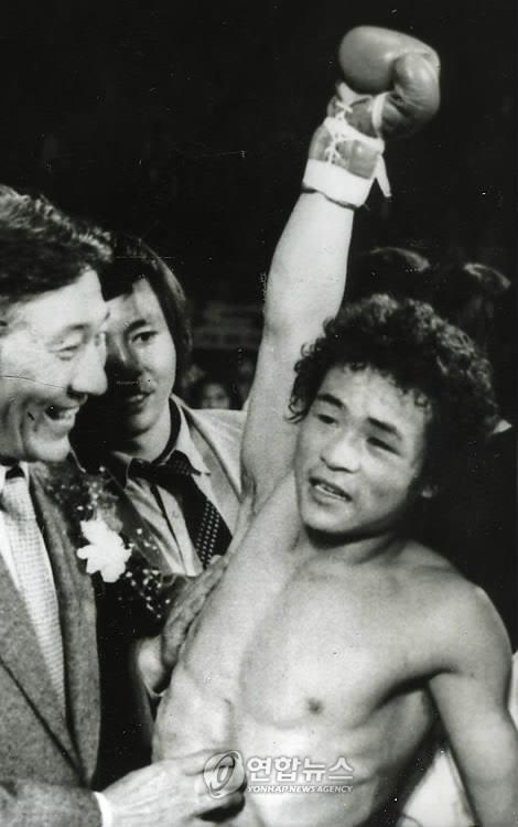 | ▲ WBC 라이트 플라이급 챔피온 장정구 WBC 라이트 플라이급 타이틀매치에서 도전자 장정구 선수가 1983년 3월 28일 챔피언 사파타를 KO로 물리치고 환호하는 관중들에게 손을 들어 답례하고 있다.[연합뉴스 DB] |