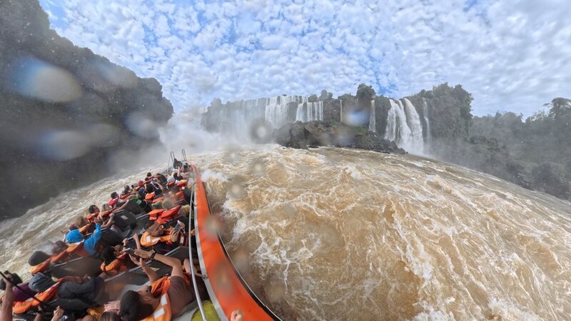 이구아수를 만나는 여정은 아르헨티나의 푸에르토 이구아수에서 시작됐다. 처음부터 '매운맛'을 보기로 했다. 보트 투어를 통해 폭포 아래까지 다가갔다. 사정없이 튀는 물보라와 천둥 같은 굉음을 온몸으로 느끼는 시간이었다. 만반의 준비를 했지만, 비옷의 목 부분으로부터 쏟아지는 폭포수는 사정없이 몸 안으로 쏟아져 내렸다. 모두 흠뻑 젖은 채 비옷을 벗어야만 했다. 그러나 모두 웃음이 끊이지 않는 얼굴이다.