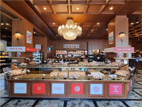 ▲ 넥슨은 서울에서 가장 오래된 베이커리 '태극당'과 손잡고 서울 장충동 태극당 본점에 '바람의 나라' 지식재산(IP)을 활용한 복합문화공간을 운영한다. 1층에는 '미지', '채병록', '강성모' 작가가 재해석한 '바람의나라'와 '태극당', 두 세계관의 만남을 표현한 그림과 조형물, 영상으로 꾸며졌다. 2층은 포토존·포토부스, 영상과 작품을 감상할 수 있는 체험 공간으로 구성됐다. 이밖에 태극당 본점 등 매장 4곳에서는 '바람의 나라' 콘셉트의 종합선물세트, 모나카 세트를 판매한다. (서울=연합뉴스)