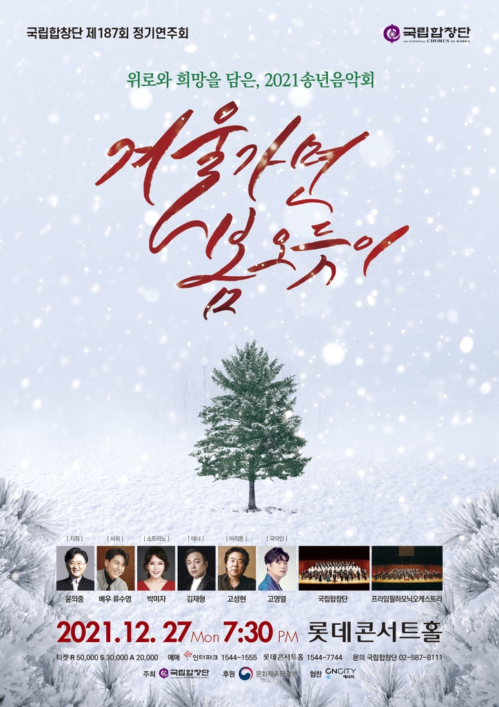 (서울=연합뉴스) 임동근 기자 = ▲ 국립합창단 송년음악회 '겨울가면 봄 오듯이' = 국립합창단이 다음 달 27일 오후 7시 30분 서울 송파구 롯데콘서트홀에서 송년음악회 '겨울가면 봄 오듯이'를 개최한다.
